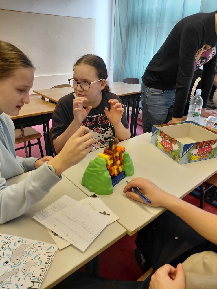 Március 23-án, hétfőn délután a víz világnapja alkalmából vidám hangulatú, játékos vetélkedőt szerveztünk az 5–6. évfolyamos tanulók számára. A diákok 4 fős csapatokban, előre elkészített menetlevéllel járták végig a hat állomást, ahol változatos és izgalmas ügyességi feladatok várták őket.